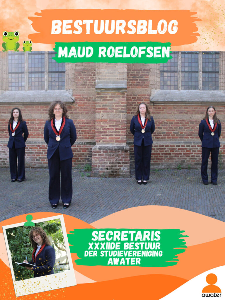 Veel hoogtepunten herhalen zich. Er komen nog iedere maand borrels waar ik naar uitkijk. Elke twee weken mag ik mijn eigen ledenmail schrijven en versturen. En wekelijks, bijna dagelijks, zie ik mijn geweldige, lieve bestuursgenootjes, Donna, Fien en Noa, bij de bestuursvergaderingen! Al op het moment dat we erachter kwamen dat we Awater samen zouden gaan besturen, klikte het eigenlijk meteen tussen ons. Volgens mij is dat nu ook nog steeds zo! Donna maakt tijdens activiteiten de meest sexy foto’s van me, ik heb Fien nooit harder zien lachen dan wanneer ik een blunder maak en Noa en ik hebben dezelfde nutteloze kennis van internetgekkies die we elke dag nadoen. Ik kan alles bij ze kwijt, van