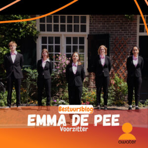 Als je mij een jaar terug had verteld dat ik nu voorzitter van Awater zou zijn, had ik je héél raar aangekeken. Ik was eigenlijk helemaal geen actieve Awateraar toen, heel mijn leven speelde zich nog in Brabant af. Na de buitenlandse reis veranderde dit, hoe kan het ook anders. Een week waarin ik werd